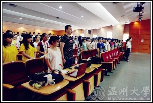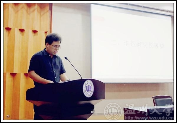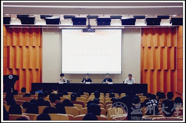 金色九月,美丽温大又迎来了一批新成员。9月19日上午,232位本科生,6位研究生相聚在温州大学岩松堂雁山厅,参加2014级新生开学典礼,共同庆祝新梦想的启程。博彩公司 院长李运河教授、党总支书记郑彩莲教授、副院长蔡可群副教授莅临典礼现场,各科室负责人、院各系主任、新生班主任和辅导员出席本场典礼,学生科叶如芳老师主持典礼。